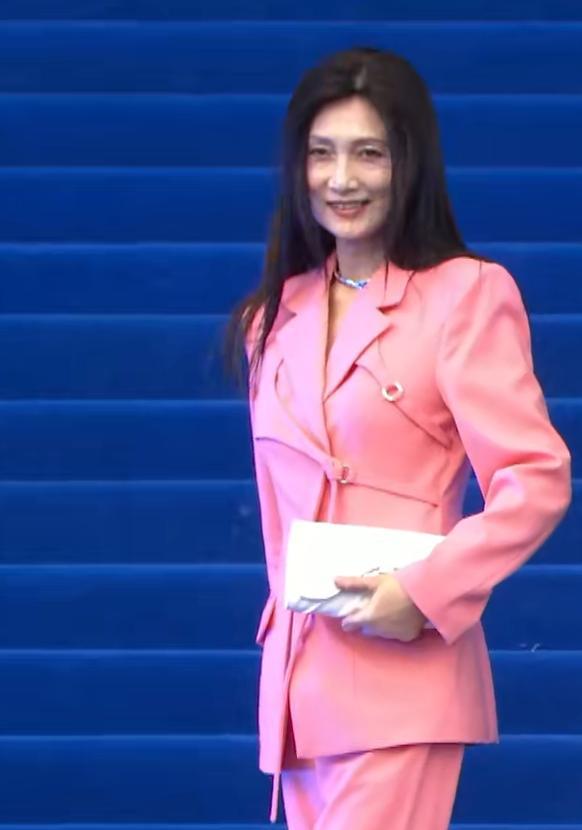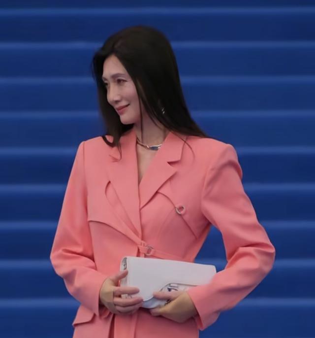 当天,林芳兵身穿一身粉色西装,还是黑长直的发型,打扮得年轻又时髦。本就身材高挑的她,走红毯时,就如同模特一样,非常亮眼。