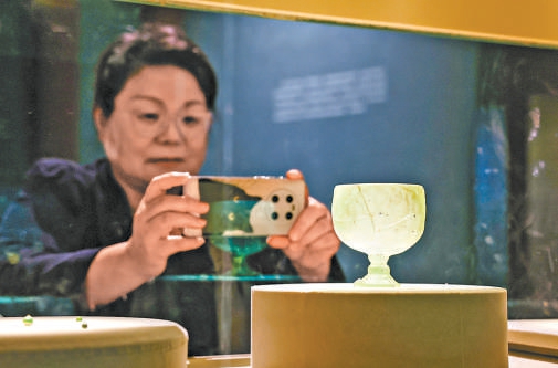 太原韩祖念墓出土的玻璃高足杯。北京日报记者 邓伟摄